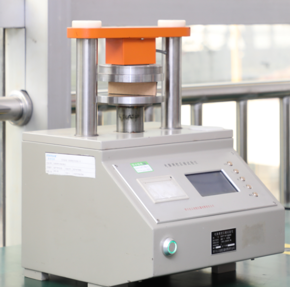 3.取(qǔ)樣裁切寬度為25mm土0.5mm時誤(wù)差較大,超過標準規定(dìng)的土0.5mm的(de)範(fàn)圍,特別(bié)是裁切兩端截麵有傾斜,與裏紙、麵紙不(bú)垂直時,較大地影響了邊壓強度。試樣不能有機(jī)械壓痕(hén)、印刷痕跡(jì)和損壞(huài),測(cè)試前將試樣放在20C土2C,RH50% 士5%的環(huán)境下處理24h,並在此環境(jìng)下進行測試。將試樣t於下(xià)壓板的正中間,使試樣的短邊(biān)垂直於兩壓板。為避免測(cè)試過程中試樣(yàng)傾斜,壓板可以用很(hěn)細的剛玉砂紙包上,在包裹時應注意保持(chí)其表麵的平整度和平行度。也可以在(zài)測(cè)試前用兩個截(jié)麵為20mm x 20mm x100mm的長(zhǎng)方形打磨平滑(huá)的金屬塊(kuài)作導塊支(zhī)持試樣,並使(shǐ)試樣垂直於壓(yā)板,將試樣保持(chí)原垂直狀態,開動測定器使壓(yā)板與試(shì)樣接觸並施加壓力,當(dāng)加壓至50N時,移開導塊,至試樣壓壞後讀(dú)取試樣可以承受的最大壓力。精確至1N.按上述步橐測試剩餘的(de)試樣,將所測數(shù)據求出(chū)算術平均值(zhí),則可按下式計算出邊壓強度: