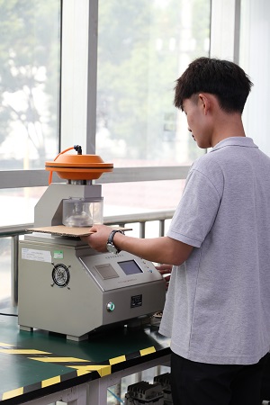 升起夾盤,放入(rù)試樣,將試(shì)樣覆蓋於(yú)整個夾盤麵上,然後給試樣施加足夠的夾持壓力。